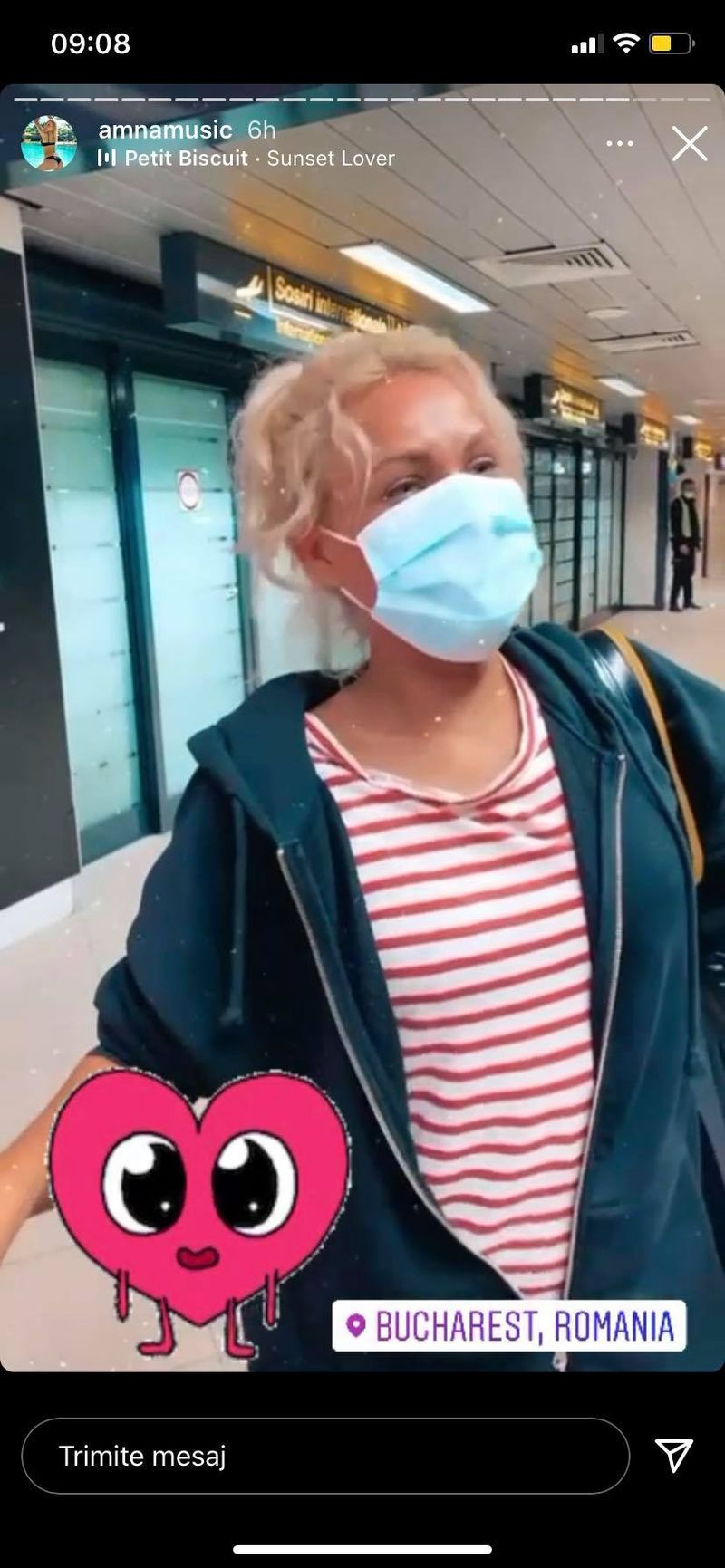 Amna a avut o escală de nouă ore în Germania, timp în care a vorbit cu urmăritorii de pe Instagram și le-a spus cât de mult se plictisește și și-ar dori să-și omoare timpul cu ceva.