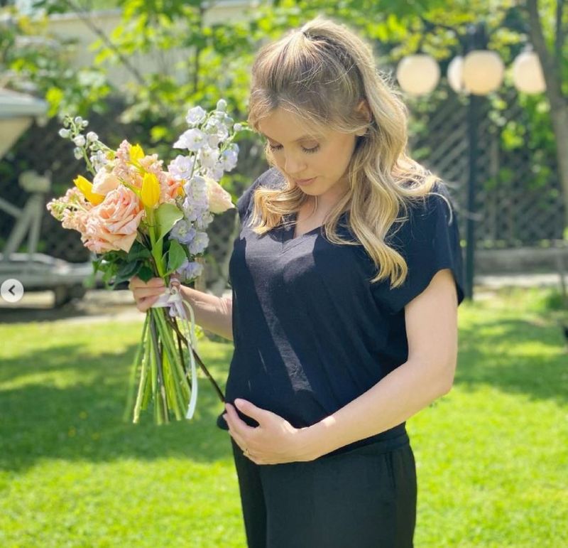 „A fost o zi plină, dar și tare emoționantă. Cu lacrimi de bucurie și nostalgie am intrat în concediu prenatal, iar colegii de la Adela mi-au făcut o surpriză foarte frumoasă după ultima mea secvență”, a scris actrița în dreptul videoclipului.