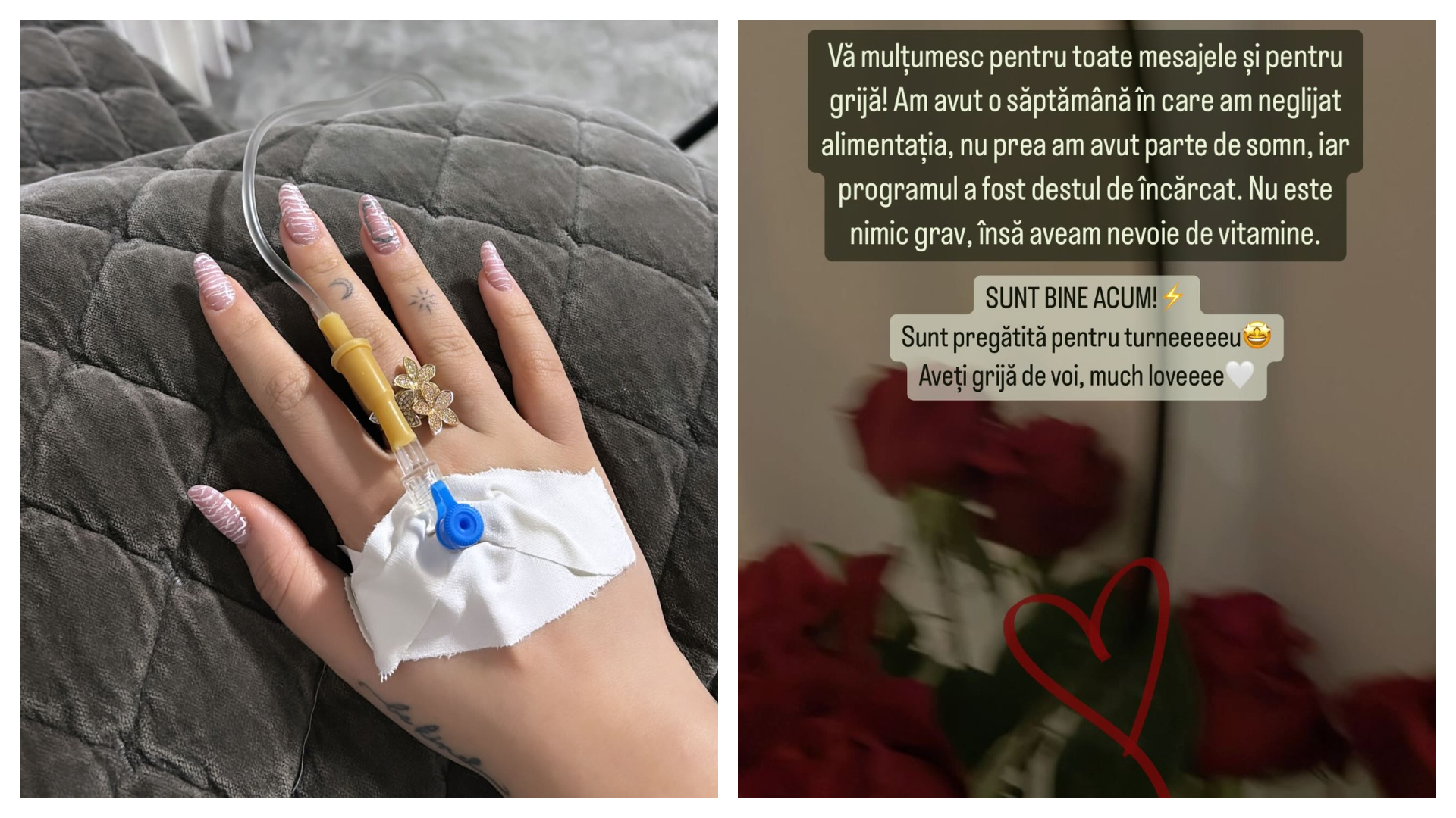 Bibi a împărtășit cu fanii săi pe rețelele de socializare că se confruntă cu momente dificile din punct de vedere al sănătății. După ce a anunțat că nu se simte bine, a publicat o fotografie în care avea o perfuzie la mână.