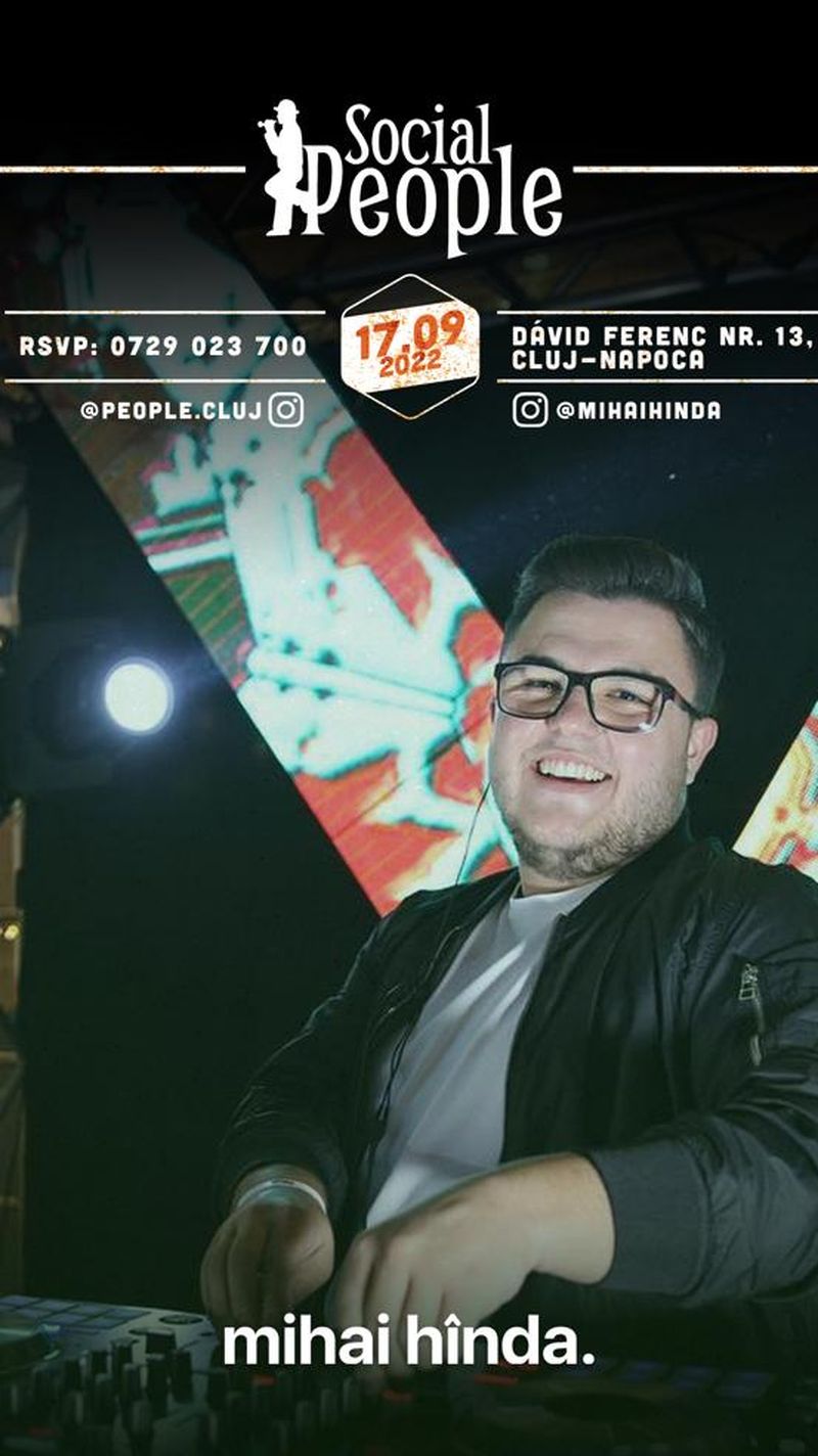 Weekend-urile sunt pentru distracție și dacă este vorba de distracție, acolo este și Mihai Hînda. Moderatorul emisiunii „Bară La Bară” va mixa live sâmbăta aceasta, 17 septembrie, la Social People, în Cluj.