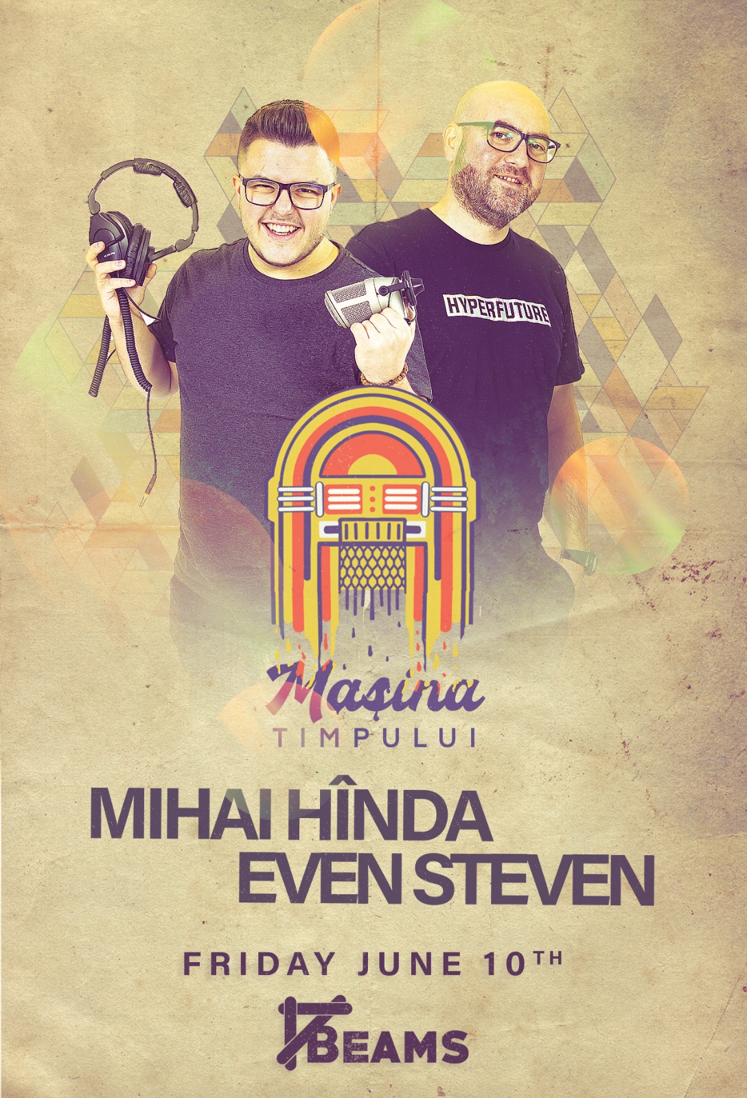 Mihai Hînda și Even Steven vor fi live in the mix cu Mașina Timpului, vineri, 10 iunie, în Beams. Te așteptăm acolo! Hai să petrecem împreună.
