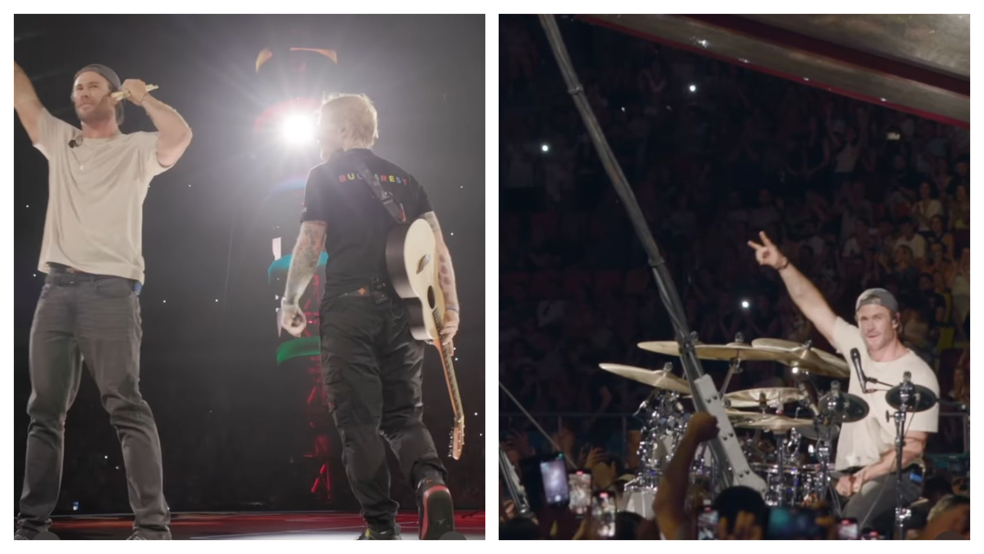Chris Hemsworth, surpriza neașteptată a concertului lui Ed Sheeran la București. Actorul din Thor a cântat la tobe în fața a 70.000 de spectatori.