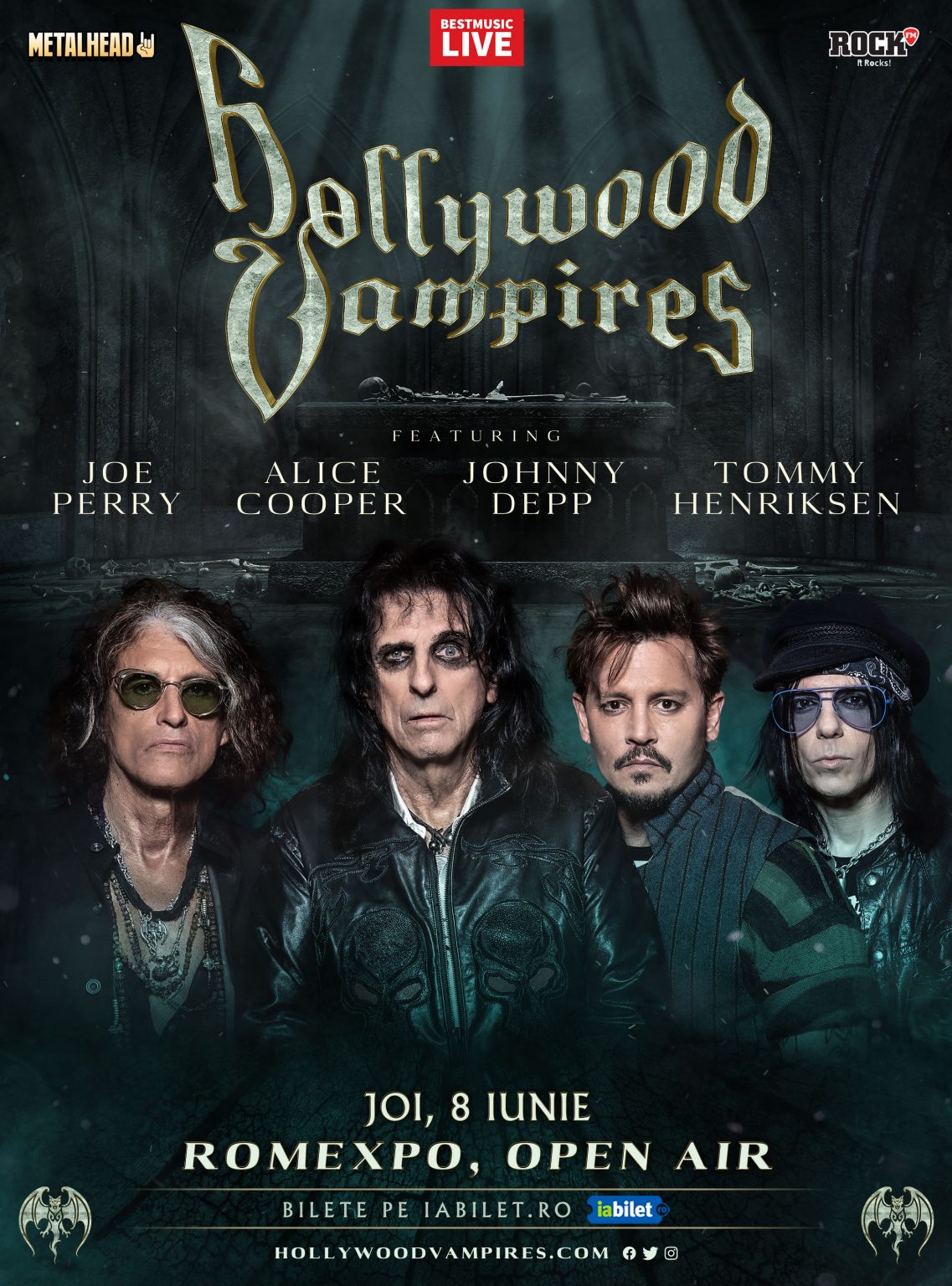 Supergrupul ”Hollywood Vampires” din care fac parte Alice Cooper, Johnny Depp și Joe Perry revine la București pe 8 iunie 2023 la Romexpo, în aer liber. Este al doilea concert pe care membrii formației îl susțin în România. ”Hollywood Vampires” ar fi trebuit să cânte la București anul trecut, din nefericire, evenimentul a fost amânat din cauza pandemiei. Biletele achiziționate pentru concertul din 2021 rămân valabile, iar organizatorii le mulțumesc fanilor că le-au păstrat.
