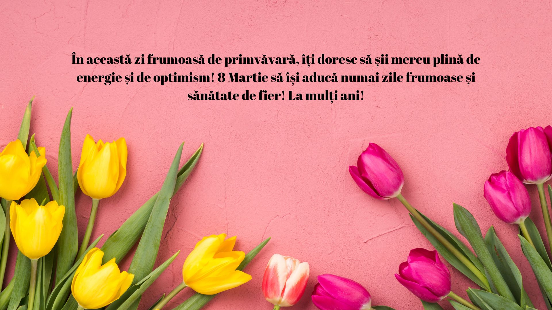 „Fie ca primăvara iubirii să îţi inunde sufletul cu bucuria şi parfumul tuturor florilor sale. Îţi doresc un 8 MARTIE cât mai frumos!”