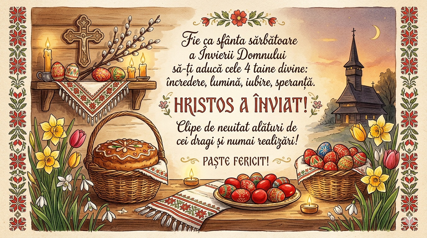 „Paște fericit! Fie ca sărbătoarea Învierii să te îmbogățească spiritual și să-ți ofere momente deosebite alături de cei dragi.”