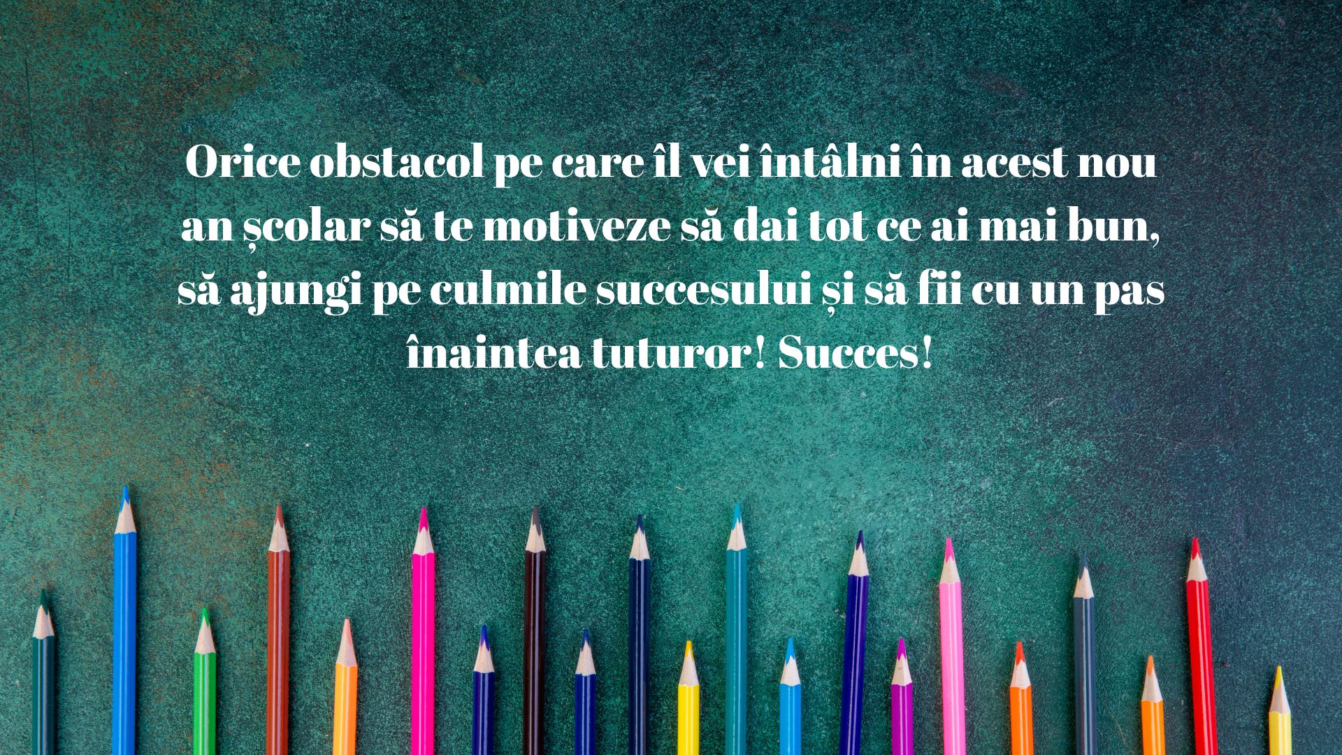 „Orice obstacol pe care îl vei întâlni în acest nou an școlar să te motiveze să dai tot ce ai mai bun, să ajungi pe culmile succesului și să fii cu un pas înaintea tuturor! Succes!”