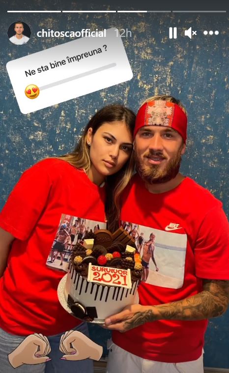 Sebi a fost așteptat de soția sa cât se poate de frumos! Aceasta i-a pregătit un tricou cu o fotogragie din cadrul competiției, dar și un tort pe care scrie „Survivor România 2021”. Cei doi s-au fotografiat împreună, iar Sebi a postat fotografia pe Insta-story cu întrebarea: „Ne stă bine împreună?”